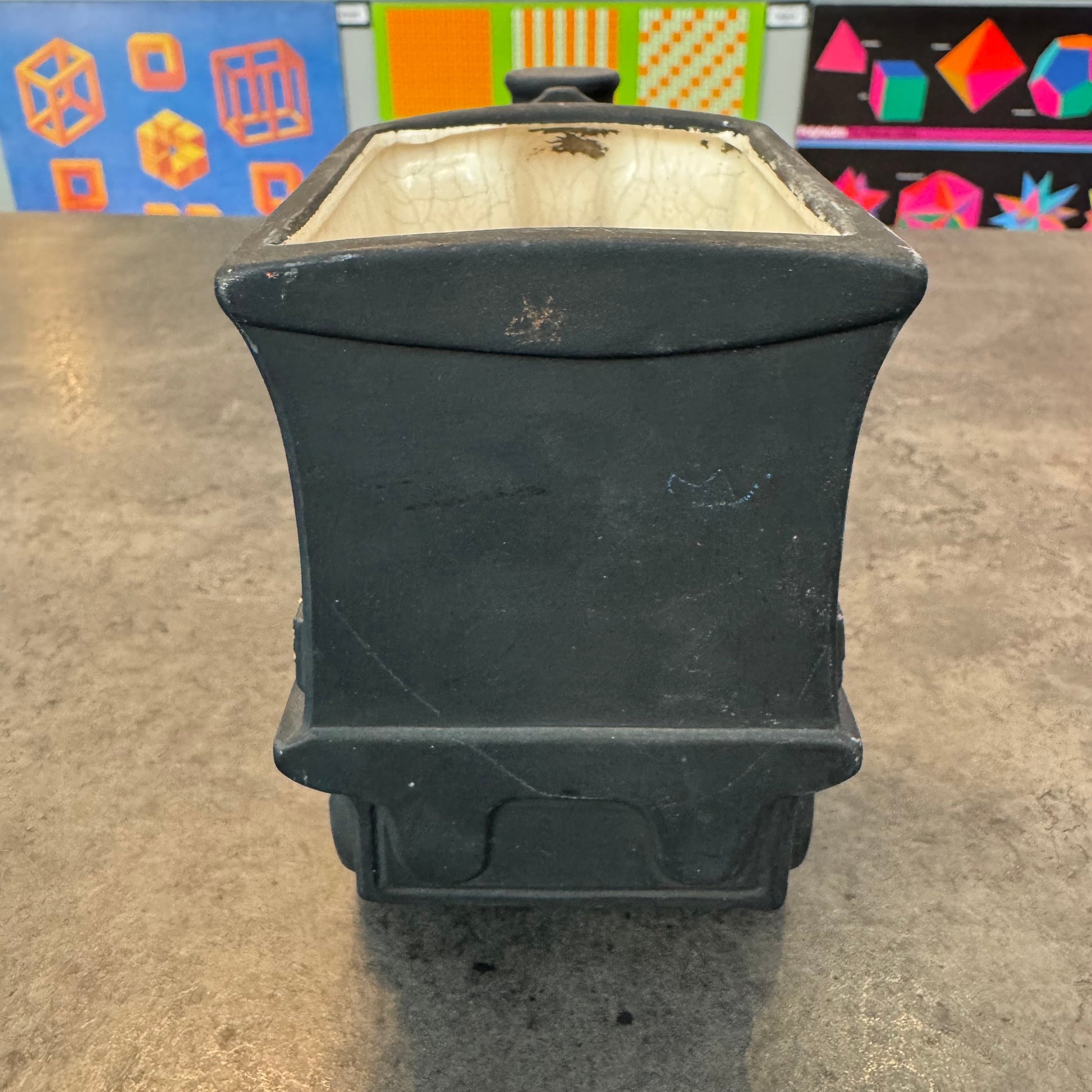 This charming train planter is in excellent condition, without any chips or cracks. The interior shows gentle signs of use. All aboard for a fun planting adventure! 8" x 3" x 4.5"