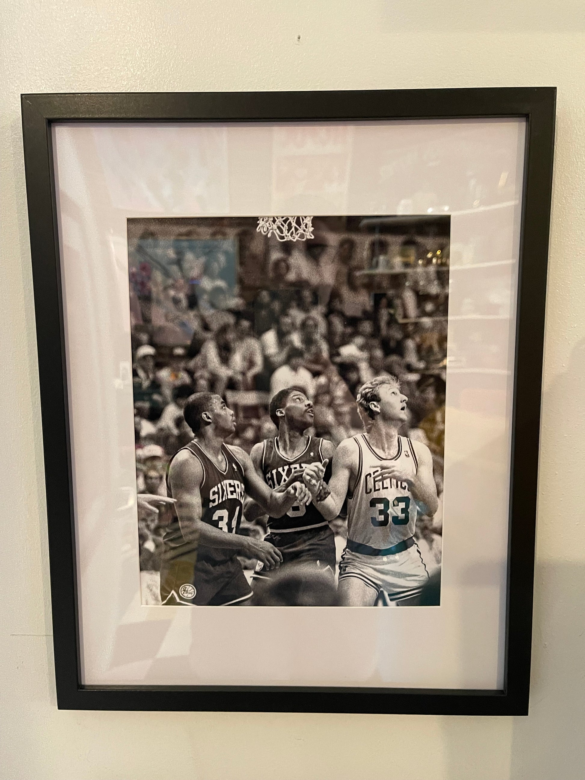 11 x 14" black frame with 8 x10" black and white photo of Bird, Irving and Barkley. L