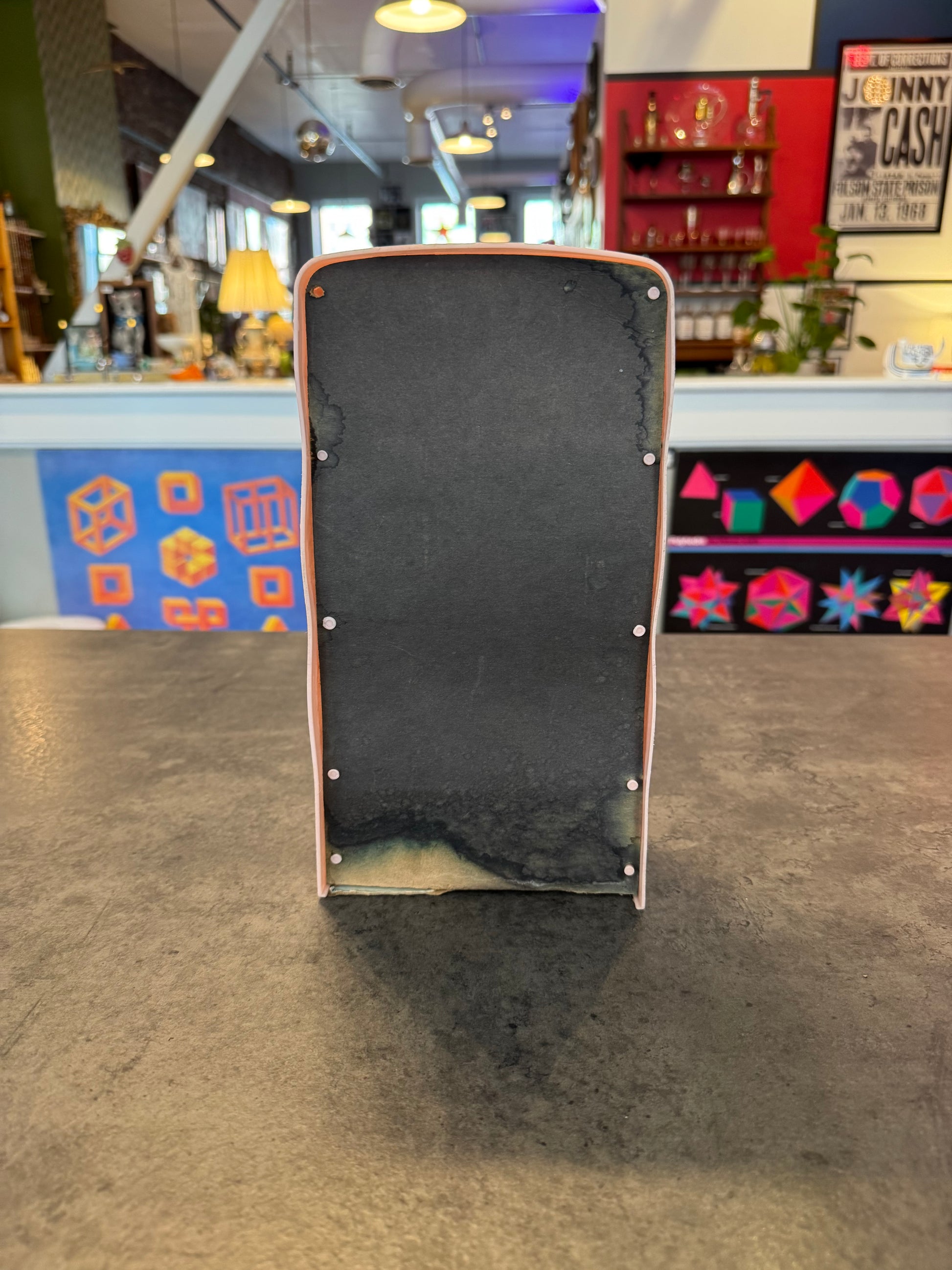 Tico Plastic Pink Dollhouse Refrigerator. In good condition, cardboard backer and base are stained but otherwise in good shape.