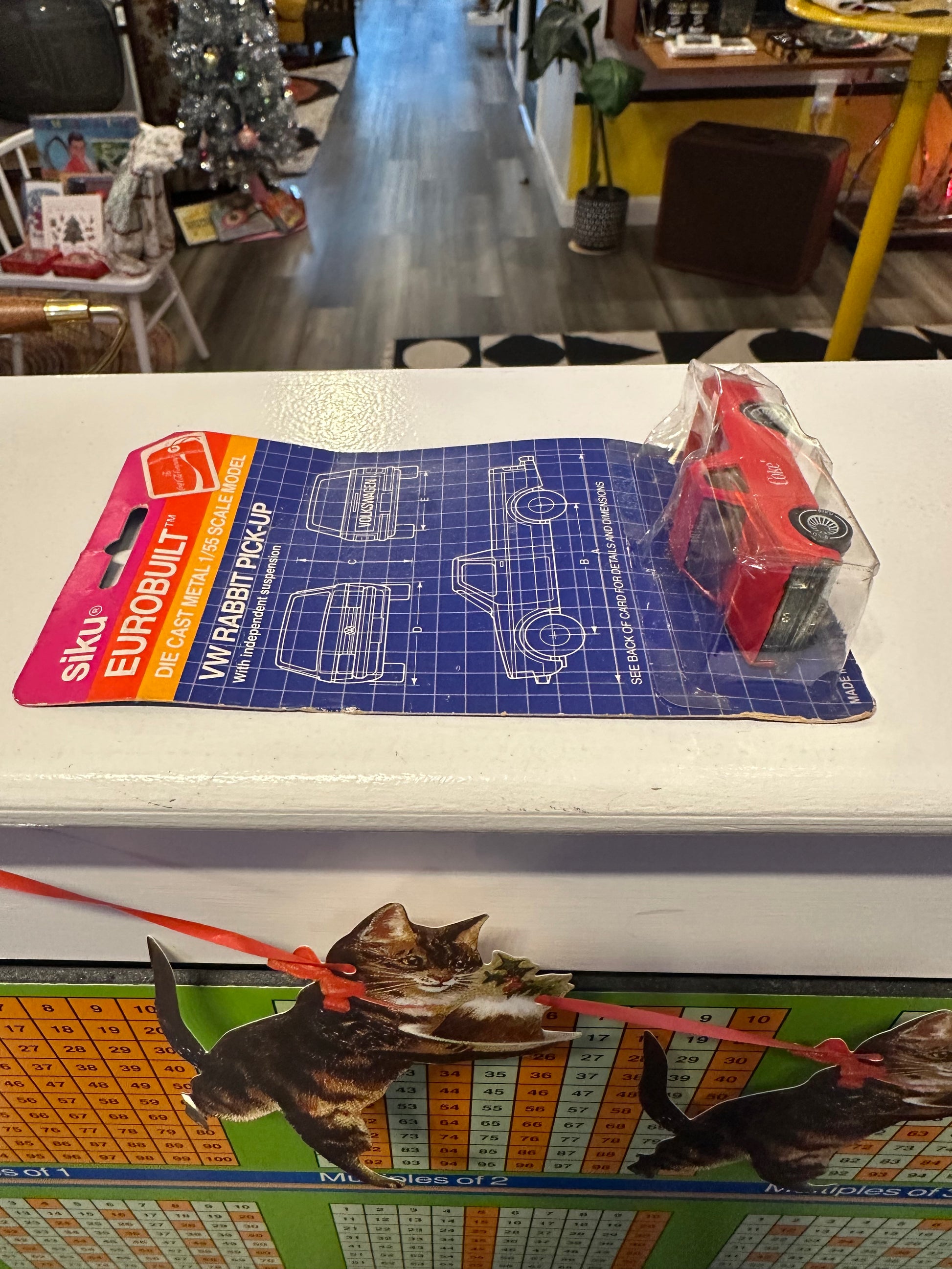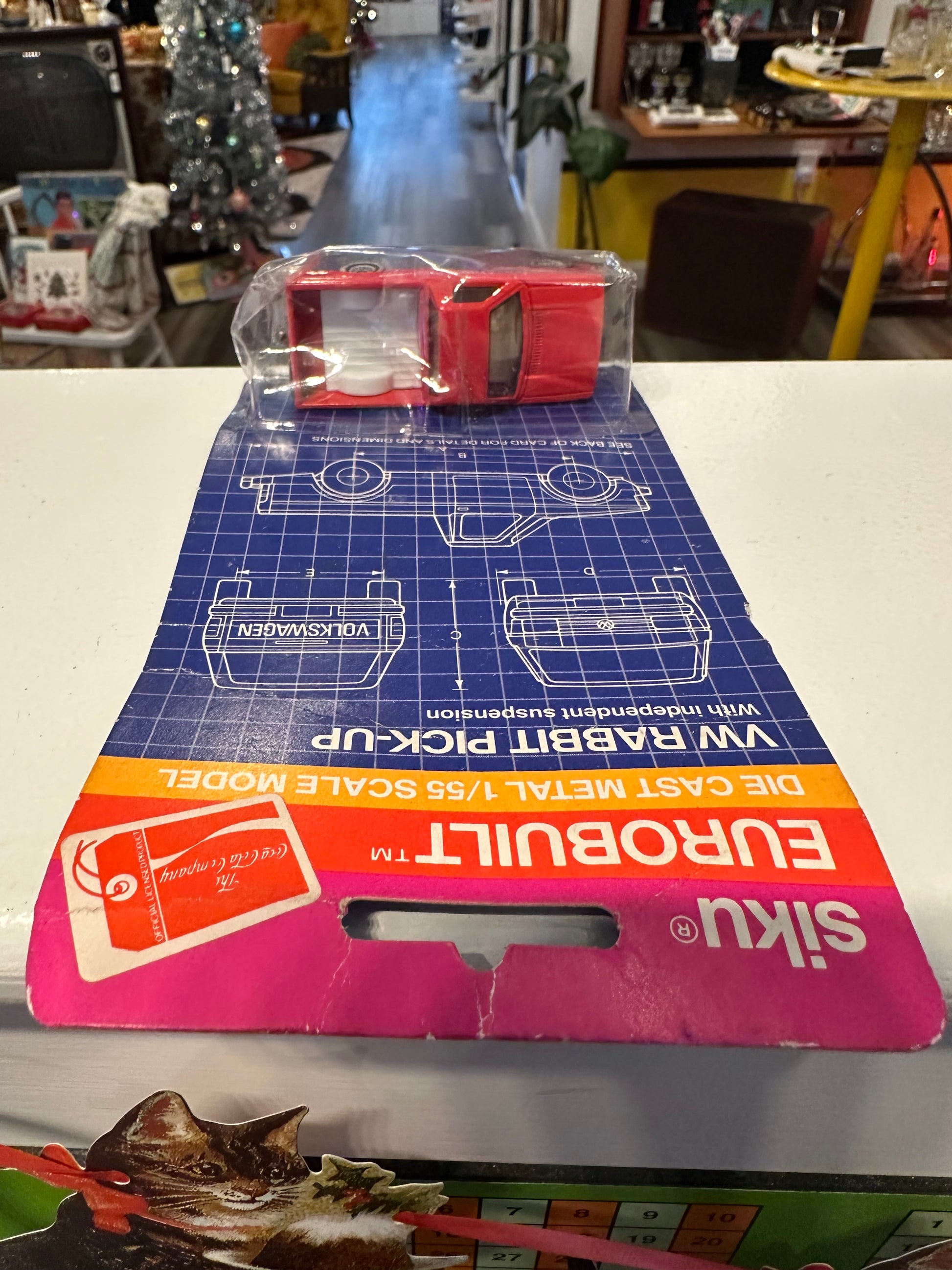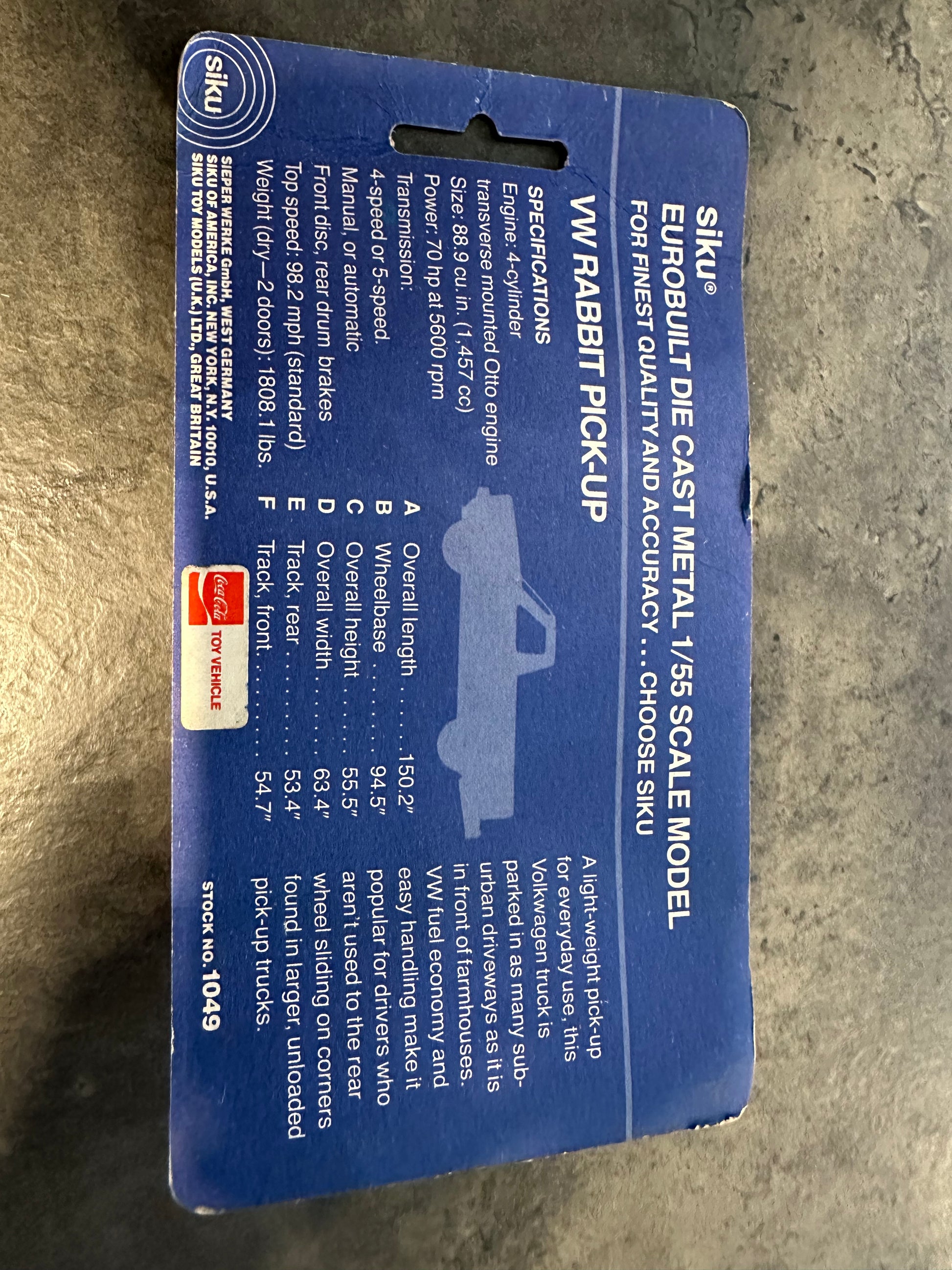 Behold: the vehicle that proves Volkswagen and Coca-Cola were separated at birth. Display it proudly and watch guests do a double-take wondering if they've entered an alternate dimension where soft drinks have cargo beds. A nostalgic novelty that's basically a conversation starter on wheels. Car is standard Matchbox size 1/55 Scale and measures approximately 3" long. Package is fully intact but has some dents in the clear plastic.